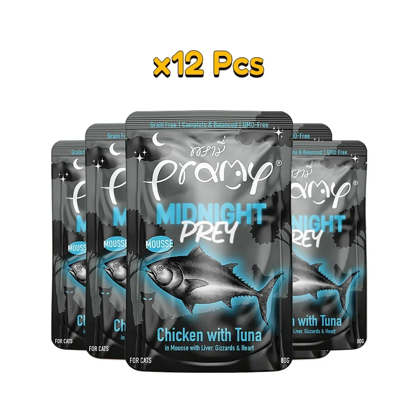 Home Shop By Brands Pramy Pramy Mignight Prey Chicken Tuna in Mousse 80mg x12