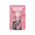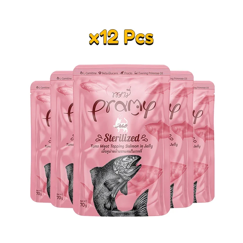 Pramy Sterilized Tuna & Salmon in Jelly is made with 100% human-grade white meat tuna: GMO-free and totally free from grains, fillers, and artificial stuff. It’s specially crafted for sterilized cats, with L-Carnitine to support fat burning and metabolism, prebiotics for better digestion, and biotin to help keep nerves sharp and coats shiny. Plus, evening primrose oil gives their skin and fur an extra healthy glow. Perfect for sterilized cats of all life stages!