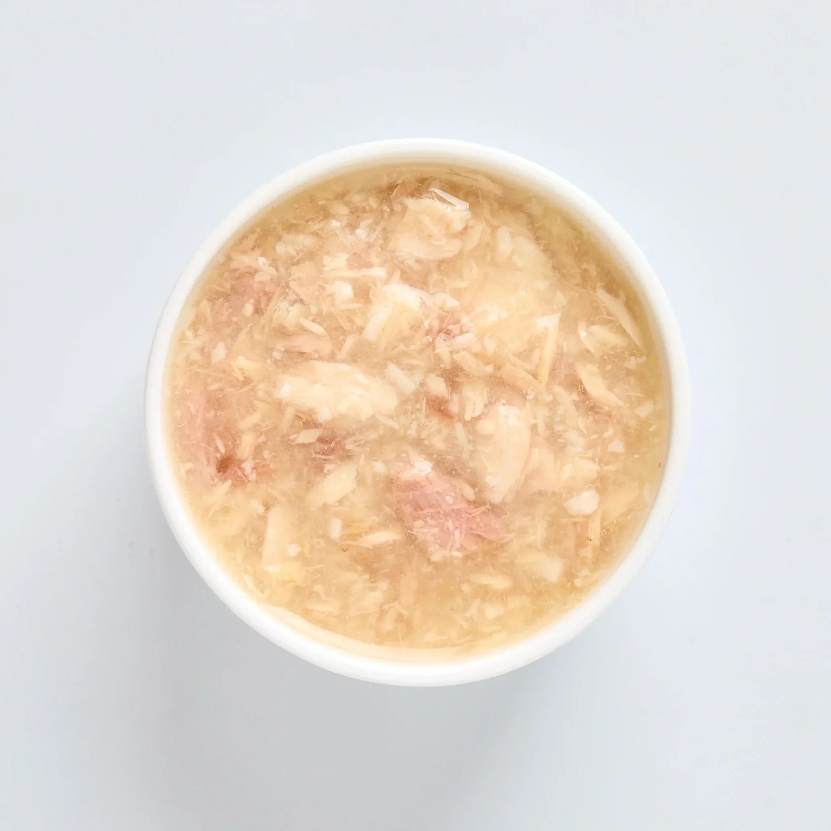 Treat your cat to a delicious mix of human-grade white meat tuna topped with rich crab gravy: GMO-free and made without any grains, fillers, or artificial nasties. This tasty topper is more than just delicious, it’s functional too! With beta glucan to support immunity, L-Carnitine for a healthy metabolism, and yucca to help reduce stool odor. Coconut oil, krill oil, and evening primrose oil all work together to keep your cat’s skin healthy and coat shiny. Perfect for cats of all ages!